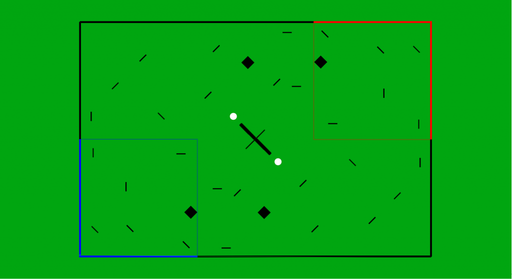 2.1.1. The Starting Line is a zone in each teams corner that extends 10 feet from each teams spawn point in both directions along the field boundary lines. It will be marked by cones for player awareness.