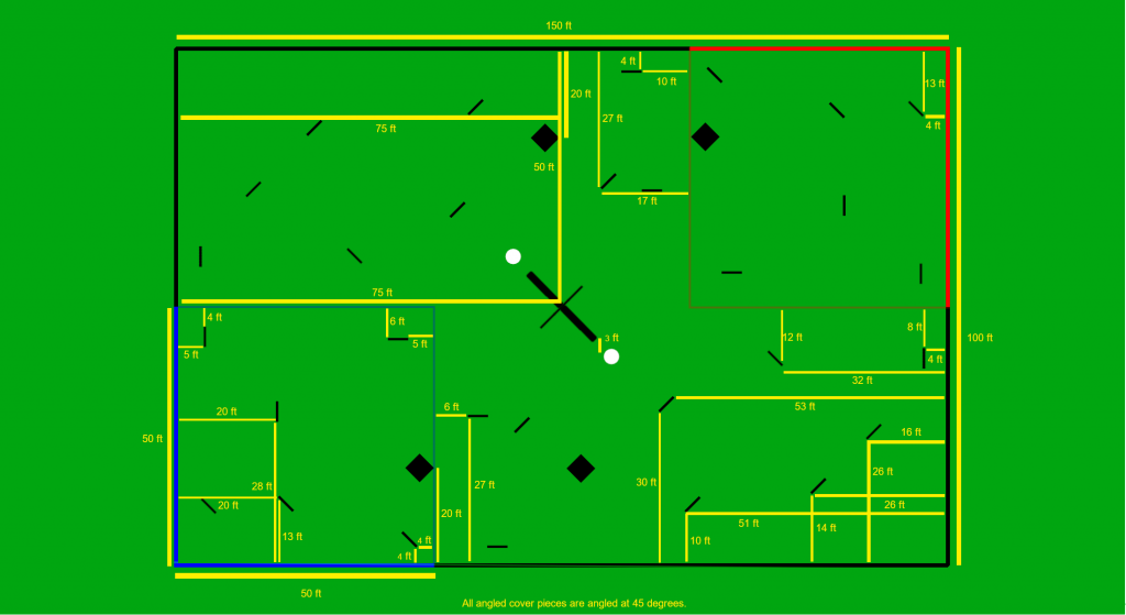 2.17.1. Each team has a 50 foot by 50 foot square from their spawn point that is their spawn zone. This is indicated on the field layout image and will be marked off on the field by cones or other visible measures.